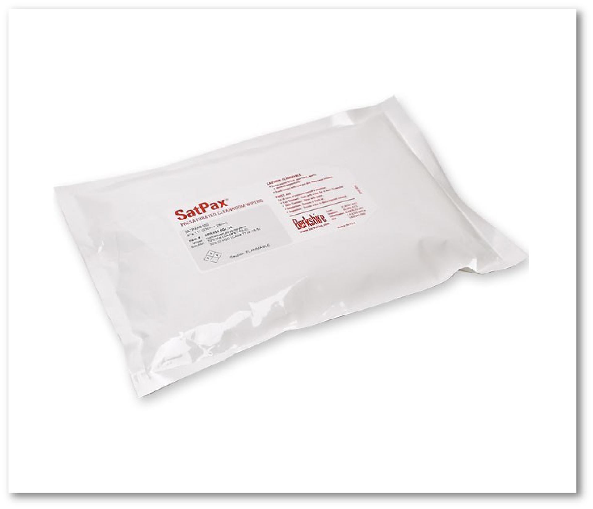 Berkshire SatPax® 550 wipes are composed of exceptionally clean, 100% meltblown polypropylene and are pre-wetted with a high saturation level of 70% IPA and 30% DI water. This pre-wetted wipe format provides a more cost-effective and easy-to-use solution compared to the manual wetting of dry wipes, which requires bulk handling of messy solvents and maintenance of squirt bottles and results in inconsistent wetting and cleaning.